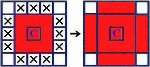 (5×5×5)ステップ③ 外回りの16コマのうちのエッジ部分12コマをセンターと同色にする。